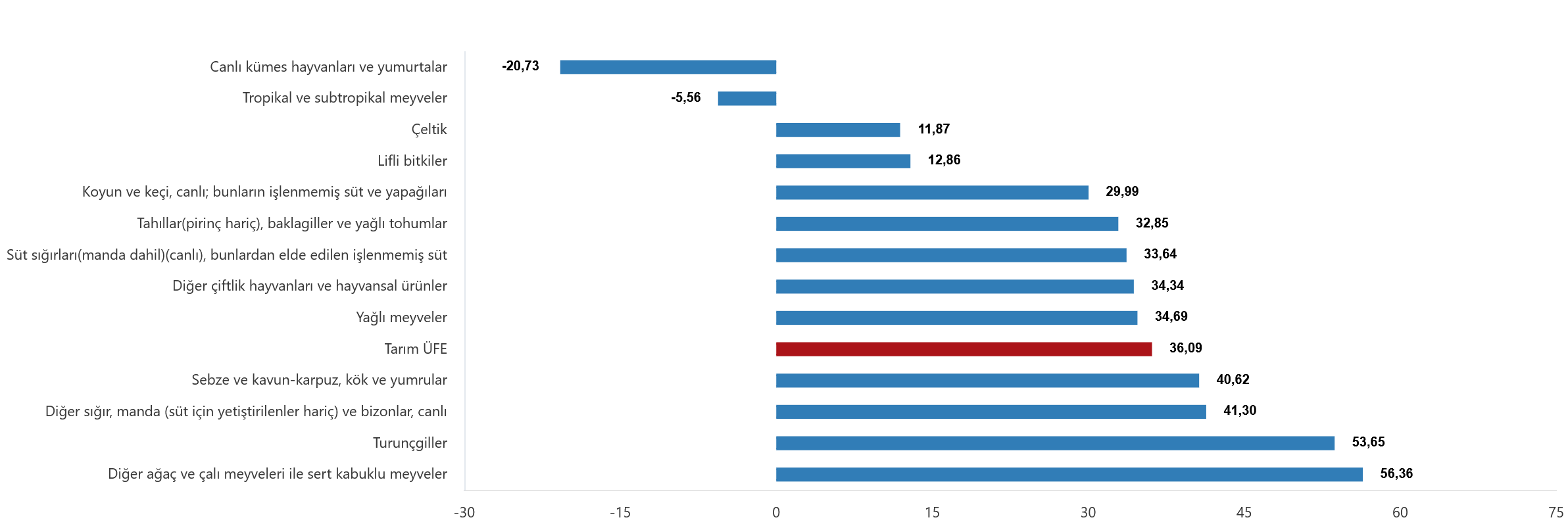 Bu durum, önümüzdeki günlerde çarşı ve pazarda fiyat etiketlerinin yeniden yukarı yönlü hareketinde etkili olabilir. Yıllık bazda ise en yüksek artış %56,36 ile diğer ağaç ve çalı meyveleri ile sert kabuklu meyvelerde gerçekleşti.